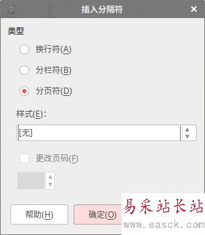 3、在這里我就將樣式設置為“默認樣式”,轉頁設置為“1”。