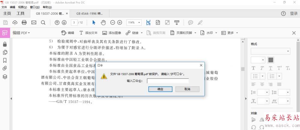 4、但是面對加密的文檔,會提示需要“輸入口令”,這個時候需要使用軟件PDFPasswordRmover,移除PDF的密碼,就可以按照上面的方法愉快的OCR識別了。有時也會出現(xiàn),點了“編輯圖像”,但是未能進行OCR識別,只是把當頁識別成一整張圖片,我也用PDFPasswordRmover處理了一下,然后再進行OCR識別,就沒問題了。