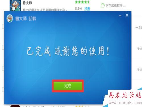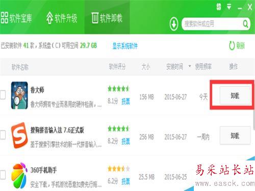 桌面上會顯示出360軟件管理頁面,上面有魯大師的卸載按鈕,點一下卸載,如圖所示:
