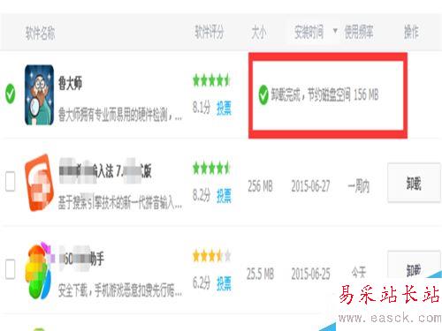 360軟件管理提示,卸載完成,節約磁盤空間156MB。