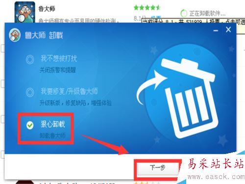 在狠心卸載前的方框里打上對勾,再點下一步,如圖所示: