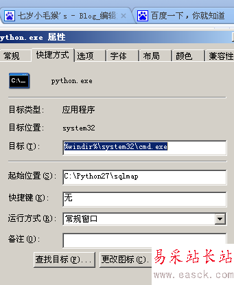 選中文件sqlmap.py 右鍵創建桌面快捷方式 ,點擊快捷方式屬性