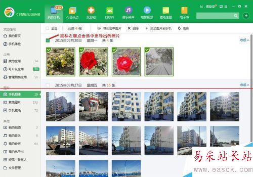 5、鼠標左鍵點擊勾選要導出的手機照片。