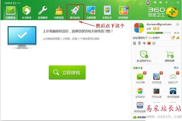 2、點擊<優化加速>這個圖標,對,就是那個小火箭。
