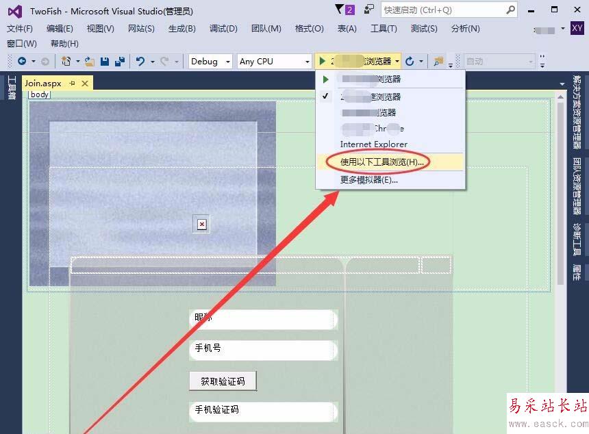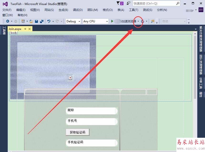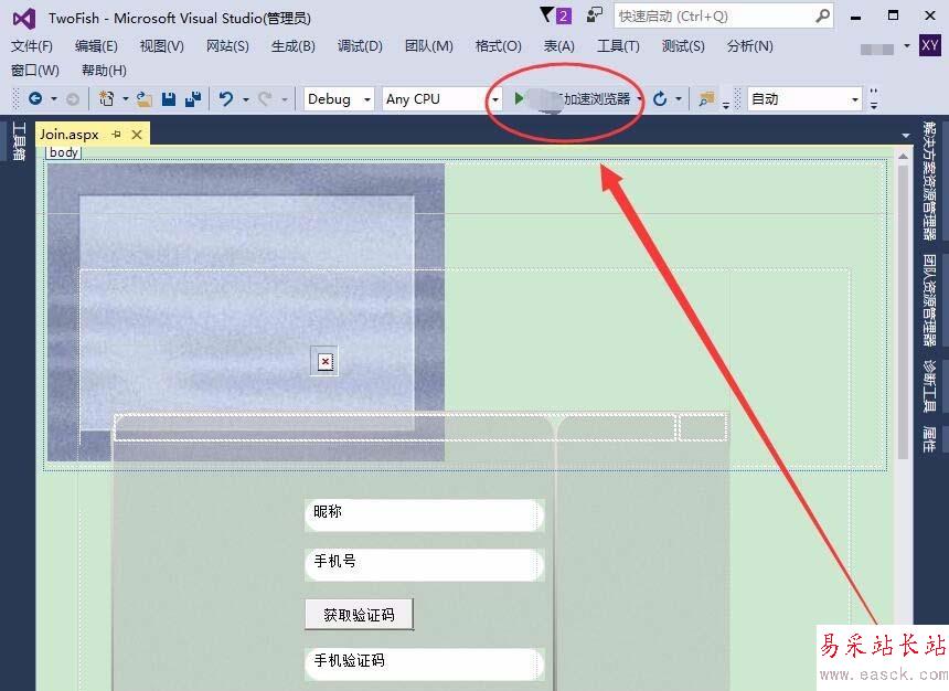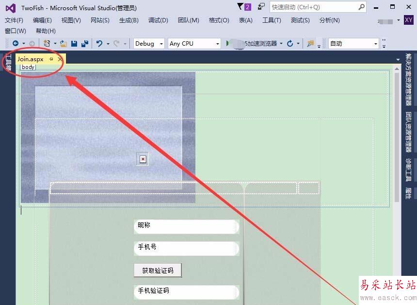 打開Visual Studio,制作一個網頁,本例為Join.aspx頁面。