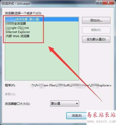 瀏覽方式窗口中,可以選擇瀏覽網頁的默認瀏覽器。