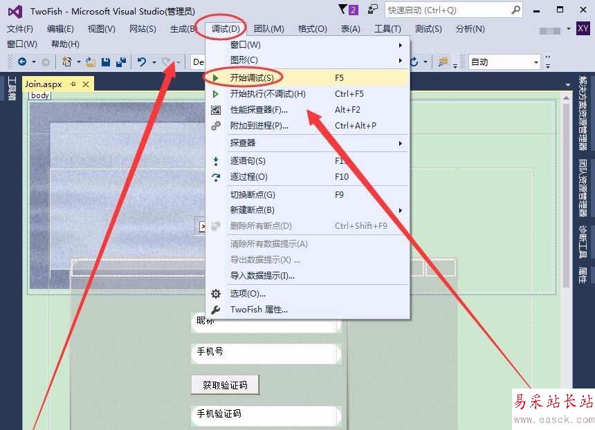 方法一:單擊調試菜單,選擇開始調試按鈕。
