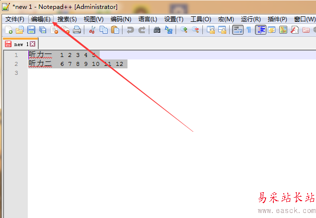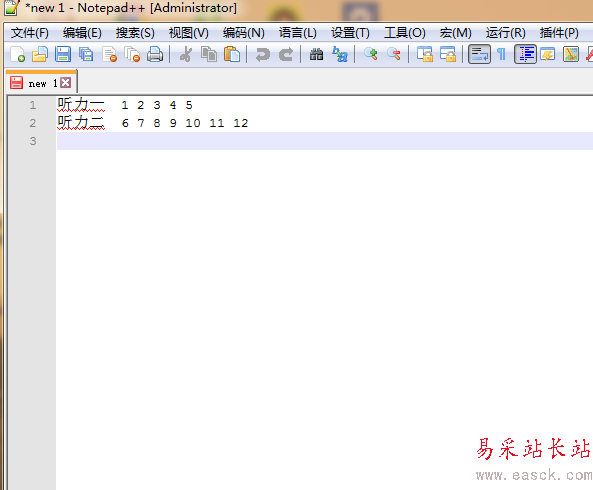 1、首先是將需要需要進(jìn)行操作的文本復(fù)制到notepad++。可以在notepad++上直接雙擊,創(chuàng)建一個新的文本框,