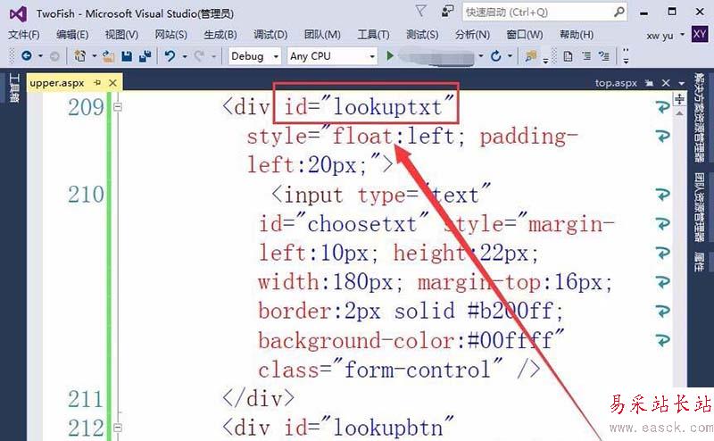 2、在標簽中設置搜索框的標識,標識名為lookuptxt。