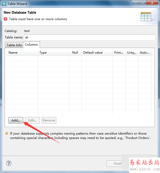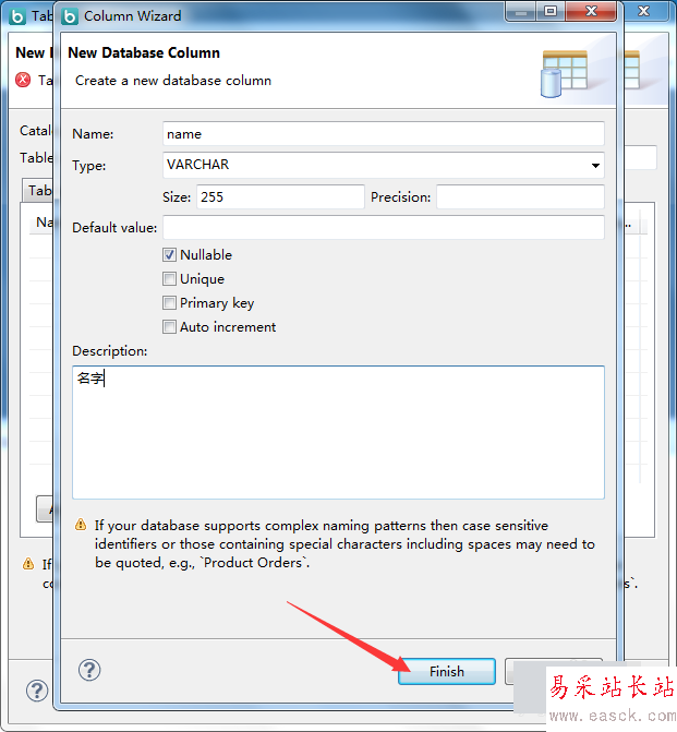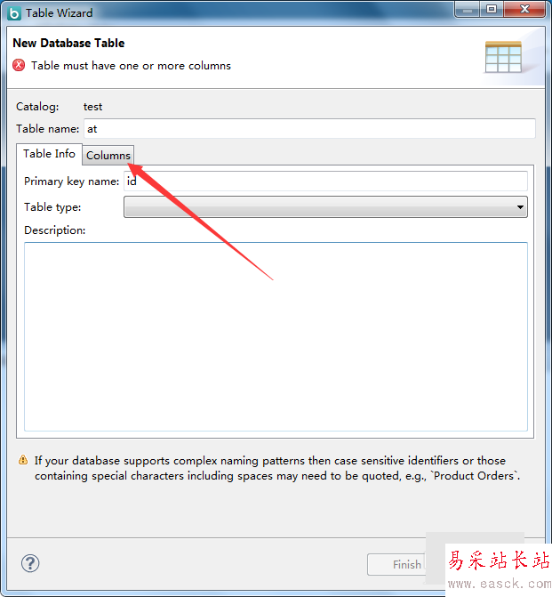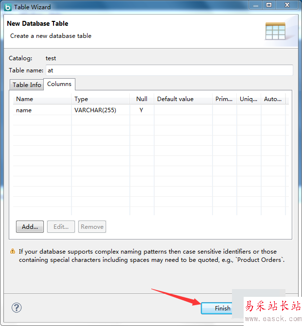 6、設置完字段信息,點擊Finish,回到創建表的頁面,如圖