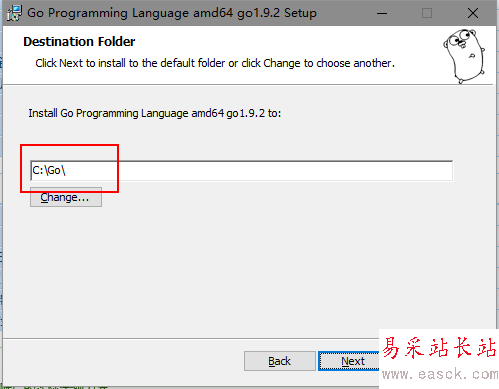 默認(rèn)安裝路徑是 C:/Go,通常都會更改,但這會影響到后面設(shè)置環(huán)境變量,因此更改到哪里請記住。