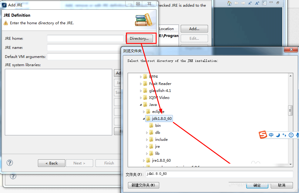 7、然后 點擊Directory...選擇自己安裝的JDK的本地路徑 點擊確定