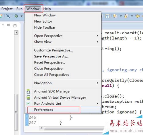 1、點擊菜單欄的“Window”->“Preferences”,打開“Preferences”對話框。