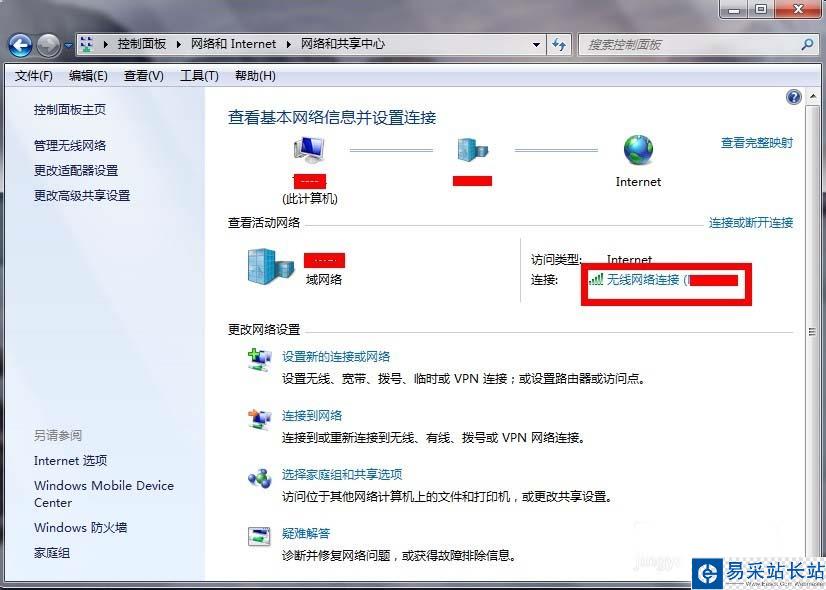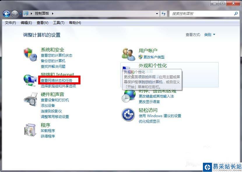 在控制面板上的選擇“網絡和internet”選項下的“查看網絡狀態和任務”