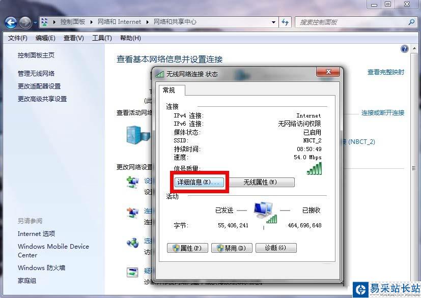 在彈出的無線網絡連接屬性中選擇“詳細信息”
