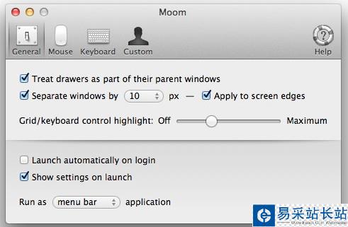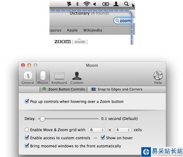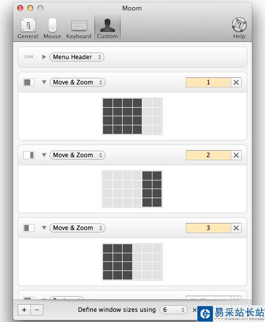 1. Moom 中帶有“Move & Zoom”功能,提供了宮格(Grid)來自定義任意尺寸窗口,當你用拖拽出窗口尺寸后立即改變其尺寸和位置,宮格劃分越細小,提供的尺寸越精確哦,最小的是1×1,最大則為16×16。