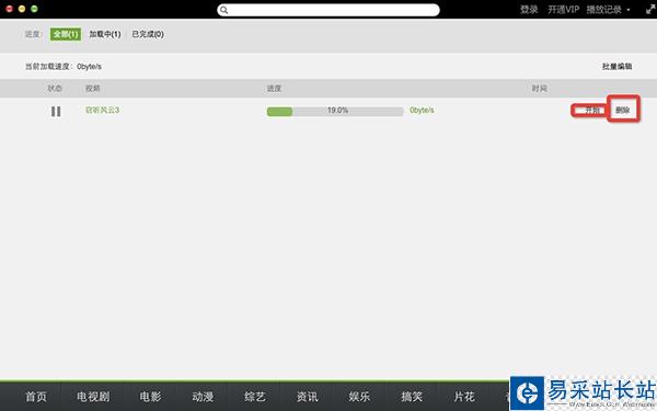 不知道細心的你有沒有發(fā)現(xiàn),下圖中的所示的下載列表頁右側(cè)有一個——“刪除”摁鈕呢?點一下刪除摁鈕你所下載的視頻文件就在列表頁當中消失了,同時源文件也一起刪除掉了。