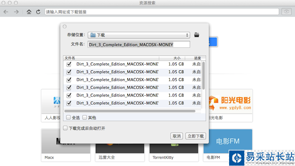 第四步:雙擊打開磁力鏈接,就會在Mac迅雷里面彈出下載任務,用戶就可以按照自己的選擇進行相應的下載。