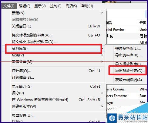3、點擊【文件】下的【資料庫】-【導出播放列表】