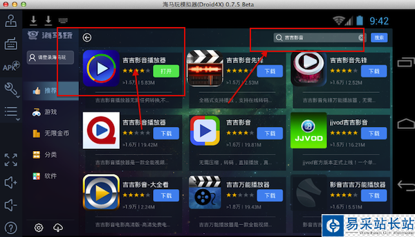 第二步,用戶根據提示安裝好海馬模擬器Mac版,然后打開該軟件,在海馬玩里面搜索吉吉影音: