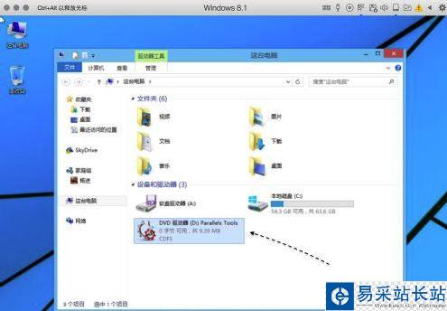 如果安裝驅動的界面沒有自動彈出的話,請打開虛擬機系統中的“我的電腦或資源管理器”窗口,雙擊一個名為 Parallels Tools 的光盤。