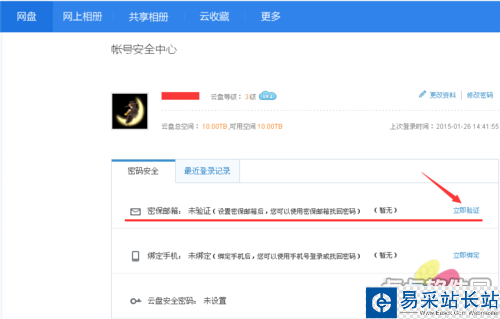 跳轉到賬號安全中心設置界面,找到密碼安全,有個密保郵箱設置,點擊立即驗證