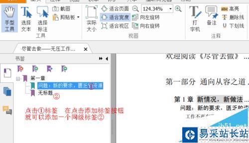 4、如圖,點擊①書簽,在點擊【添加書簽】按鈕,就可以添加一個同級的書簽