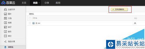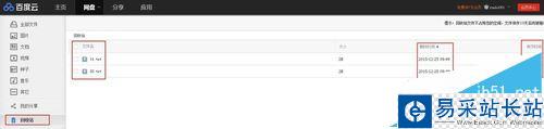 2、在網頁左中的位置會顯示我們現在所在的位置為回收站,在右側會顯示我們曾經刪除過的文件(文件名,大小,時間,回收站保存時間為10天)