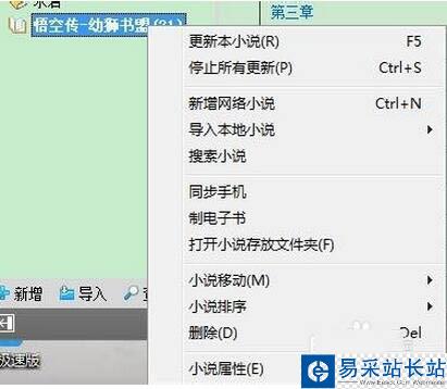 在左方選擇已經(jīng)下載好了的小說,以悟空傳為例,點(diǎn)擊右鍵