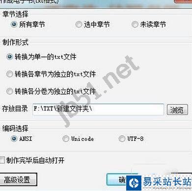根據(jù)需要選擇選項(xiàng)和文件存放位置,點(diǎn)擊確定