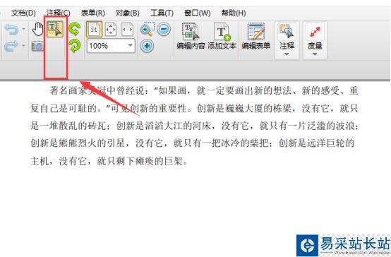 3、PDF文件添加至編輯器程序后,我們點擊“選取工具”來實現PDF內容的編輯。