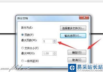 5、在拆分的文檔中,最大頁數中保存的頁數,然后進行點擊“確定”的選項。
