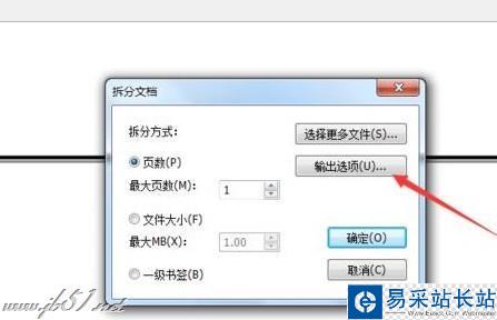 3、就會彈出了一個拆分文檔的選項框中,進行點擊”輸出選項“的按鈕選項。