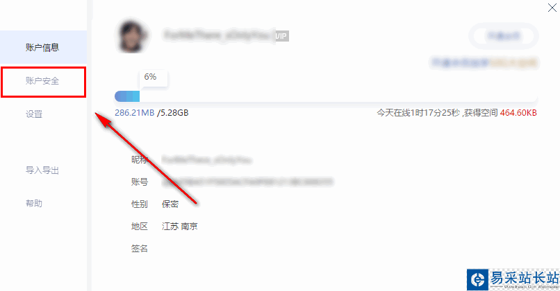 進入個人信息頁面,點擊左側的“賬戶安全”,