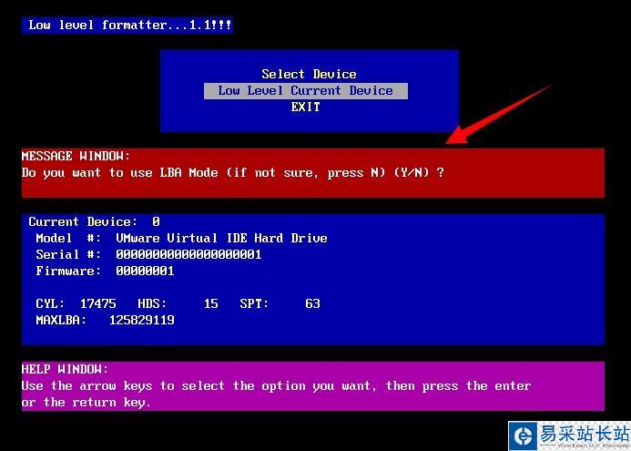 4.這邊我們選擇“Low Level Current Device”回車,在出現(xiàn)紅色提示框之后按Y即可。如下圖所示