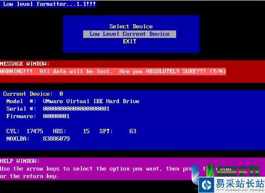 當我們按下“Y”鍵時就會出現最后的提示,在確認無誤的情況下再次按下“Y”鍵繼續即可;低級格式化后會將原有的數據全部刪除,并且無法修復;如下圖所示: