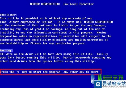 當出現如下圖所示的界面時,按下鍵盤上的“Y”鍵即可進入到下一畫面;