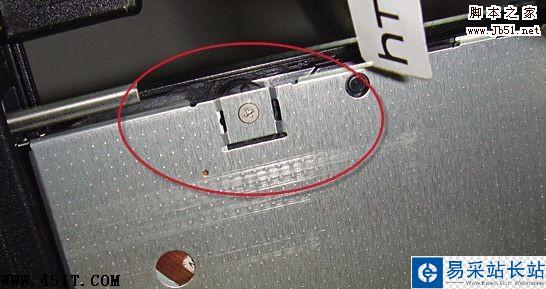 此時放入光盤,假如讀盤或寫盤還是沒有改善的話,那就繼續往下看吧。彈出光驅托盤,然后關閉本本。把筆記本翻轉過來,打開光盤托盤后面光驅組件的蓋板。友情提醒,取下的小螺絲要放好,別掉進本本里,也不要讓利器劃傷光驅透鏡和排線。