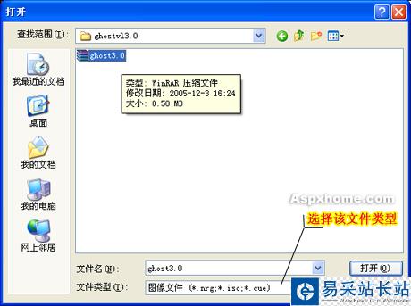 (2).在彈出的打開窗口中,找到要刻錄的ghost3.0.iso 然后點擊打開.