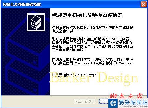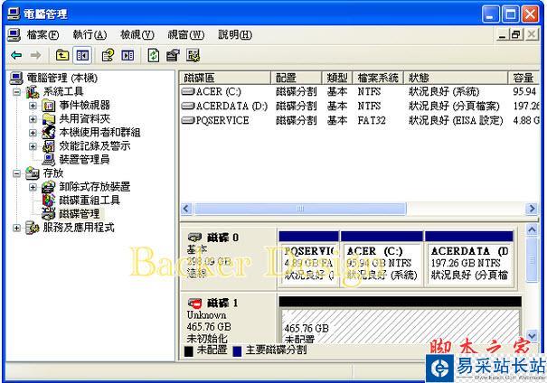 而我遇到的情況是另一種,在"我的電腦"裡, 沒出現新增磁碟,但在"控制臺"→"系統管理工具"→"電 腦管理"裡,卻出現"初 始化及轉換磁碟精靈"