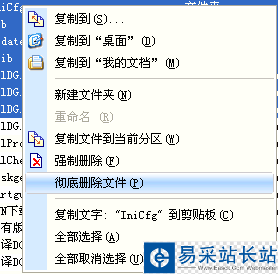 首先選擇要徹底刪除的文件或文件夾,然后在被選文件上點(diǎn)擊鼠標(biāo)右鍵,彈出文件操作菜單,如下圖所示。也可以通過主菜單“文件”中的菜單項(xiàng)實(shí)現(xiàn)相同功能。