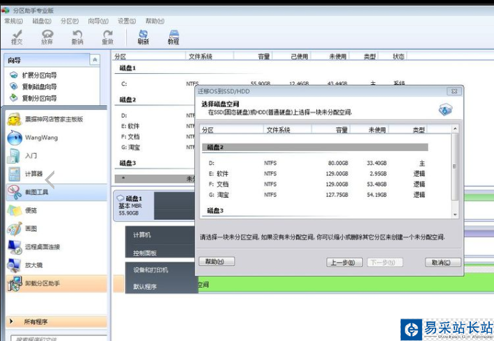 步驟一:打開你的分區助手,找到向導下面的遷移OS到SSD/HDD