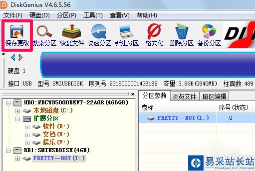 4、diskgenius刪除分區后我們需要點擊左上角的保存更改