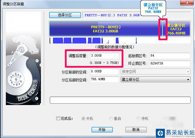 7、diskgenius設置好容量之后我們點擊開始,等diskgenius合并分區處理完之后就可以了