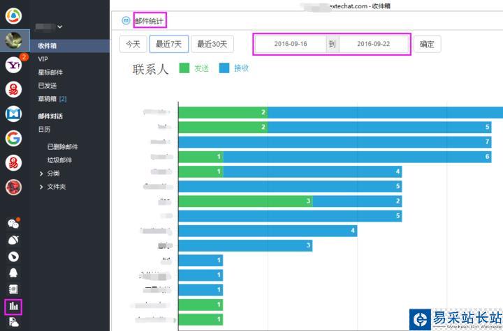 4、通過統計,也可以清晰的看到每天都是什么性質的郵件在占用我們的收件箱,方便我們對日常郵件和聯系人設置過濾分流。