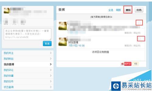 7、授權過后,我們就可以使用批量工具對發布過的微博內容進行批量選中刪除了。
