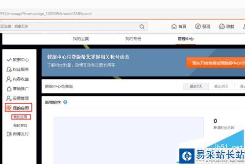 3、在管理中心面板左側菜單欄,依次點擊“我的應用”——“我的應用”(兩個按鈕名稱一樣^.^)。