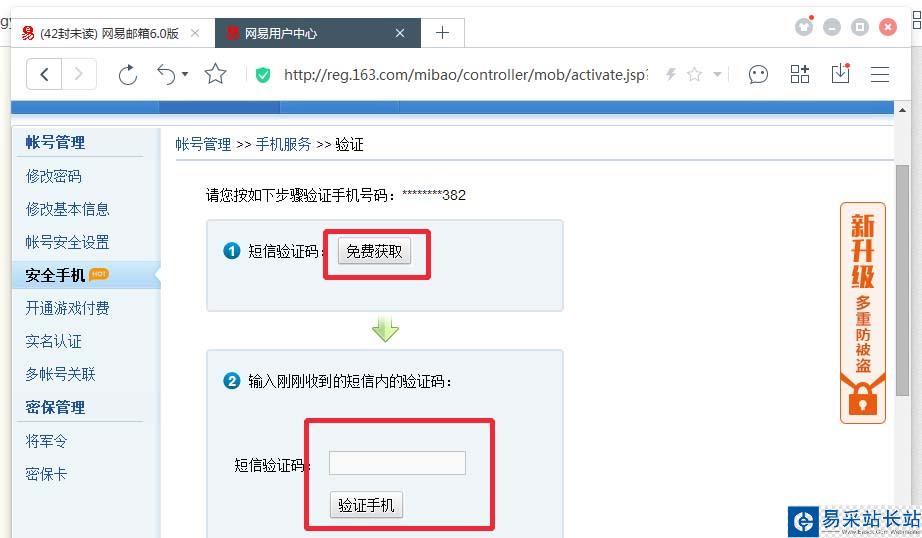點擊郵箱手機服務——馬上開通——輸入手機號碼——獲取驗證碼——輸入驗證碼——完成綁定;開啟手機驗證之后每次登陸都會收到短信提醒,方便檢測異常登錄。