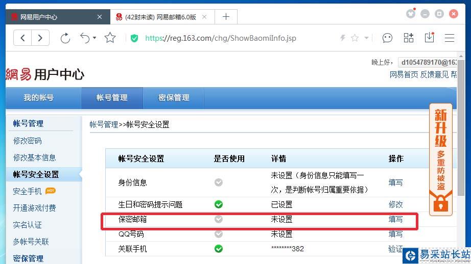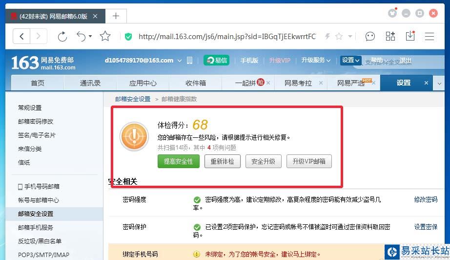 網易郵箱安全設置教程,首先綁定身份證實名認證,其次綁定手機號開啟登錄保護。