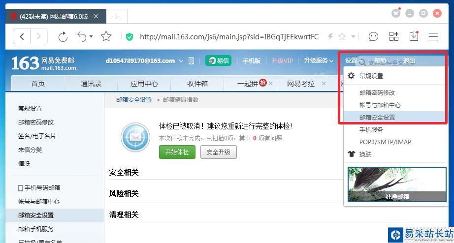 1、登錄網易郵箱,點擊設置——郵箱安全設置;